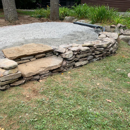 This stunning property up in Lake Placid has received a natural bluestone patio and couple of fieldstone walls! We've also added a natural bluestone walkway leading from the patio to the garage.